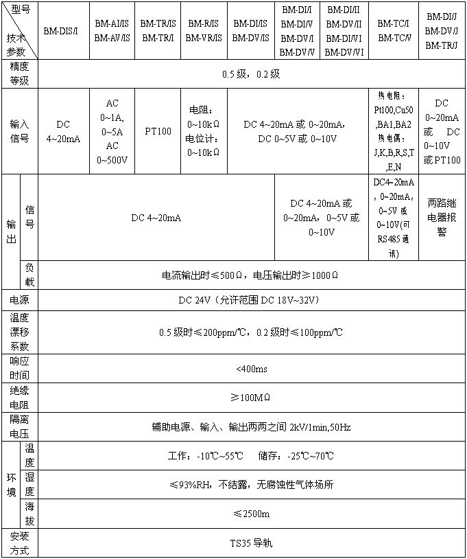 BM系列模擬信號(hào)隔離器可以對(duì)電流、電壓等電量參數(shù)或溫度、電阻等非電量參數(shù)進(jìn)行高速精確測(cè)量,經(jīng)隔離轉(zhuǎn)換成標(biāo)準(zhǔn)的模擬信號(hào)輸出。既可直接與指針表、數(shù)顯表相接,也可以與自控儀表(如PLC)、各種A/D轉(zhuǎn)換器以及計(jì)算機(jī)系統(tǒng)配接,廣泛應(yīng)用于電力、鐵路、石化、冶金、化工、食品、倉(cāng)儲(chǔ)等行業(yè)的自動(dòng)化系統(tǒng)中,是一種具有高性價(jià)比的產(chǎn)品。
