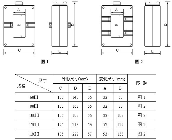 注:額定一次電流的標準值為:10A、12.5A、15A、20A、25A、30A、40A、50A、60A、75A以及它們十進位倍數或小數,有下標線的是優先值。