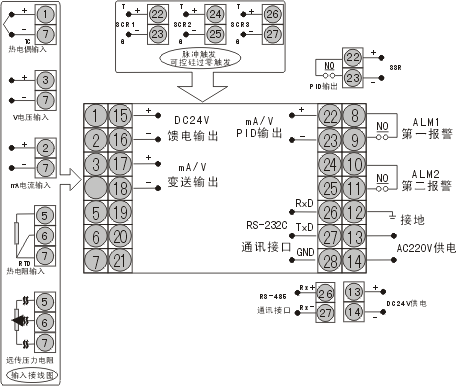 模糊PID自整定調節器/溫控器采用了人工智能模糊控制;提高了采樣速率(250ms)、運算精度、控制精度(一般優于0.2%FS);在外給定基礎上采用微