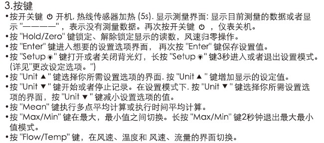 7、多種功能風速:m/s,km/h,ft/min,MPH,Knots;2種流量:CFM、CMM