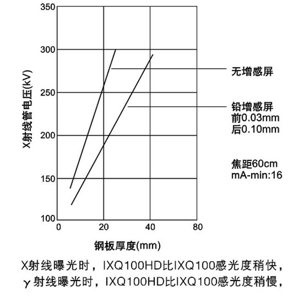 IXQ100HD具有很細的顆粒度,對工件缺陷檢出率很高,感光涂層非常均勻,不同批次具有良好的穩定性,故批次間不需經常調整曝光條件,而能得到穩定的密度均勻的圖像。