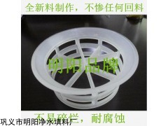 鞏義市明陽凈水填料廠生產(chǎn)的階梯環(huán)吸收了拉西環(huán)的特點,而對鮑爾環(huán)的改進,環(huán)的高徑比為1:2,并在一端增加了錐形翻邊,減少了氣體通過床層的阻力,并增大了通量,填料強度較高,由于其結(jié)構(gòu)特點,使氣液分布均勻,增加了氣液接觸面積而提高了傳質(zhì)效率。由于階梯環(huán)填料的一側(cè)端增加了翻邊,不但可以增加填料環(huán)的機械強度,而且由于破壞了填料結(jié)構(gòu)的對稱性,因而增加了填料投放時的定向幾率。又由于翻邊的影響,使得填料在堆積時填料環(huán)隙之間的接觸由此線性接觸為主變?yōu)橐渣c接觸為主。這樣,不但增加了填料顆粒之間的空隙,減少了氣體穿過填料層的阻力,而且這些接觸點還可以為液體沿填料表面流動的匯聚分散點,從而促進了液膜的表面更新,有利于填料傳質(zhì)效率的提高。